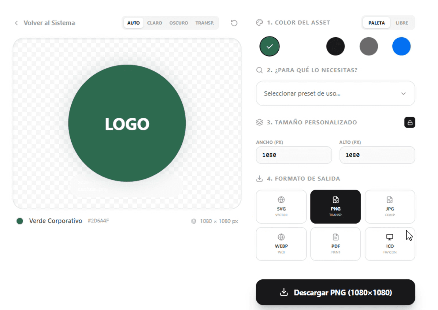 Convierte un solo archivo en PNG, JPG, SVG o WEBP en segundos, sin rehacer ni exportar varias veces.